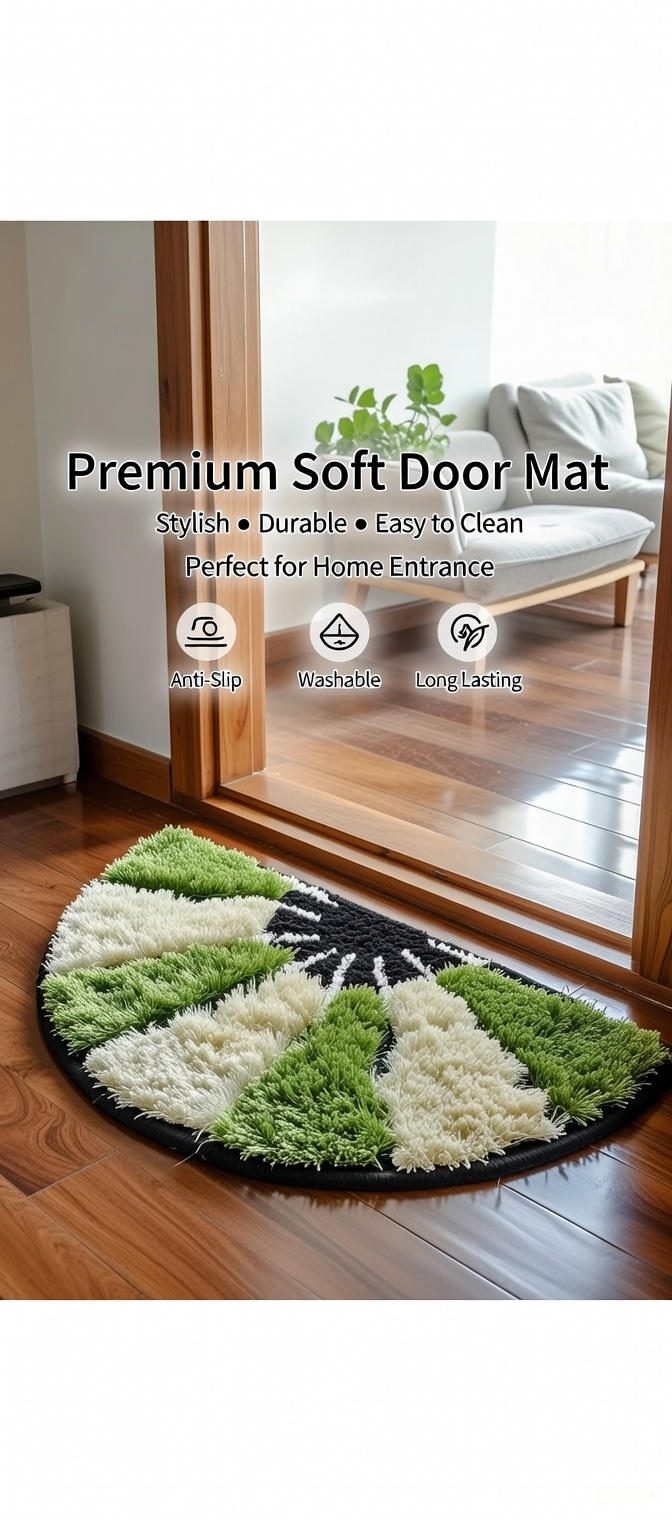 Welcome your guests with comfort and style using this premium soft door mat, specially designed for home entrance, bedroom door, balcony, and living room entry. Its modern design with soothing green and white tones adds freshness and elegance to your home décor.
