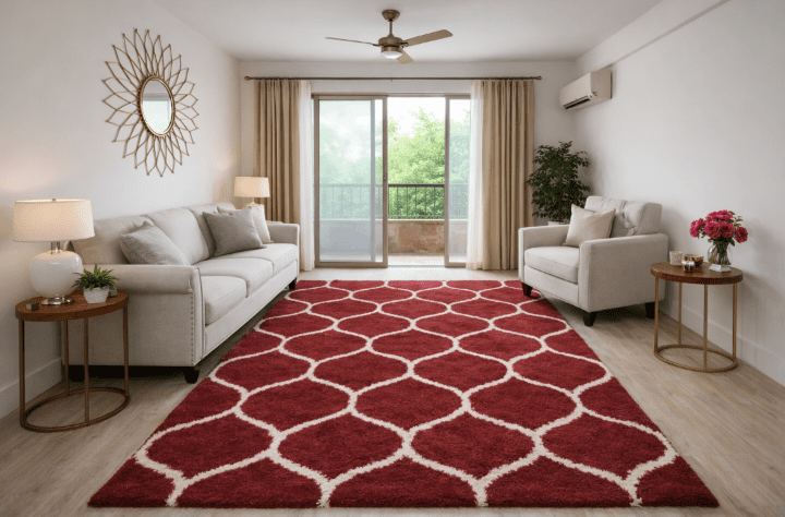 Luxury Red Geometric Pattern Carpet Rug (2×3 / 3×5 / 4×6 / 5×7 / 6×9 Feet) | Soft & Thick Area Rug for Living Room, Bedroom & Office